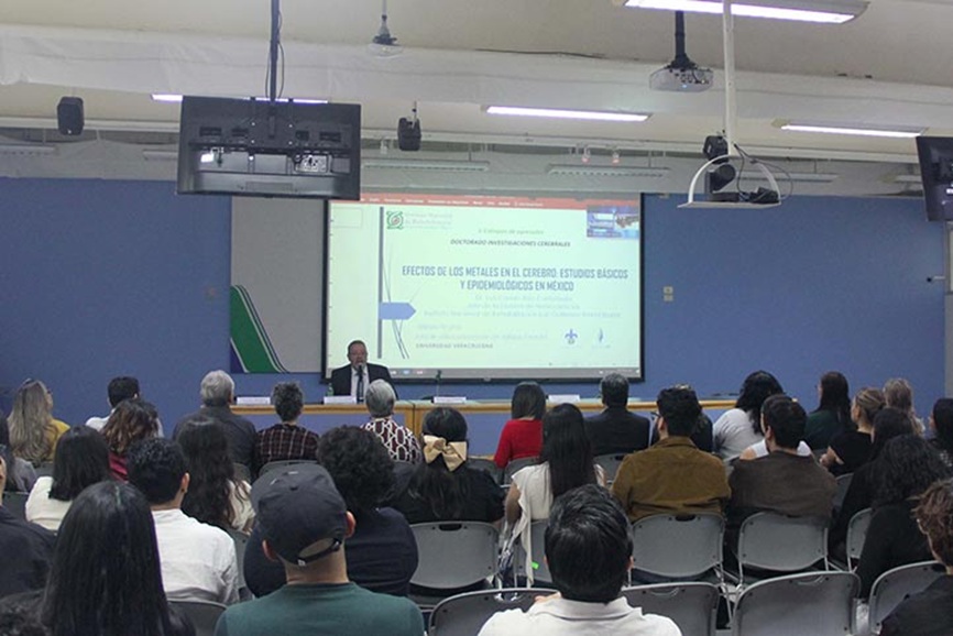 El experto dictó la conferencia inaugural del V Coloquio de Egresados del Doctorado en Investigaciones Cerebrales de la Universidad Veracruzana (UV), que se llevó a cabo en la sala audiovisual de la Unidad de Servicios Bibliotecarios y de Información (USBI).