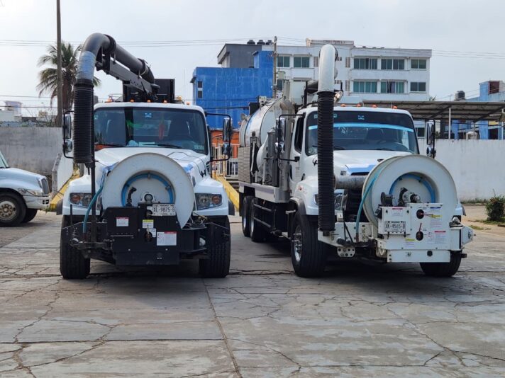 Este lunes, arribaron a la ciudad dos unidades tipo Vactor enviadas por la Comisión del Agua del Estado de Veracruz (CAEV), para fortalecer los trabajos de desazolve en zonas donde se presentan problemas en los drenajes sanitarios.