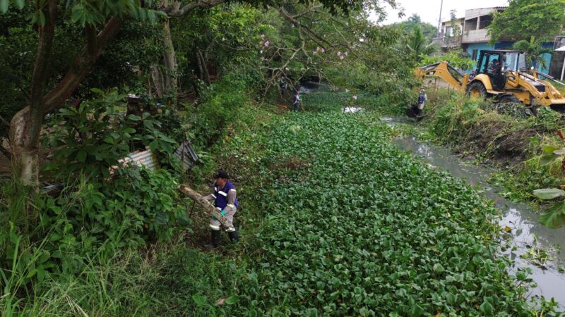Las acciones incluyeron el retiro de lirio acuático y grandes volúmenes de residuos sólidos como plástico, unicel, latas, bolsas e incluso muebles abandonados, lo que evidenció años de acumulación en estos espacios. Asimismo, se eliminaron obstrucciones para restablecer el flujo adecuado del agua hacia el río, conforme al funcionamiento del sistema hidráulico.