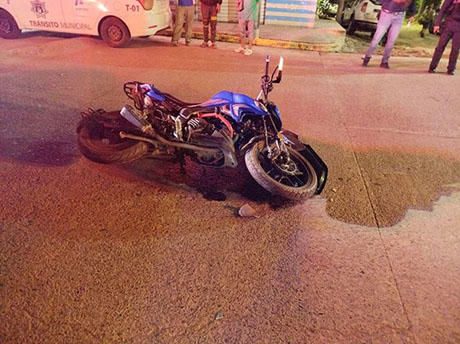 El accidente ocurrió en la noche del lunes, en el bulevar Magisterial y calle Venustiano Carranza, de la colonia Vista Hermosa, por dónde circulaba una motocicleta Street 250, de color azul y sin placas, conducida por una persona quien se identificó como José Francisco Bedoya y que al llegar ha dicho crucero, presuntamente se le atravesó un automóvil y no pudo evitar la colisión.