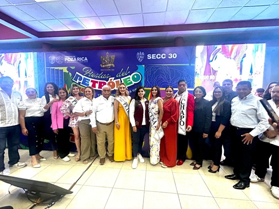 Acompañada por Andrés Francisco Aguilar Ceballos, Secretario General de la Sección No. 30, así como por la Corte Real 2026, encabezada por Aleydis Paola Ramos Zarco, Reina del Petróleo del Departamento Empleados Administrativos; Alicia del Carmen Betancourt Arenas, Princesa Primera del Departamento Servicios Auxiliares CPG; Elisa Libertad García Méndez, Princesa Segunda del Departamento Contraincendios CPG y Jonathan Zamora Peregina (VORTEC 1ero), Rey del Chapo 2026.