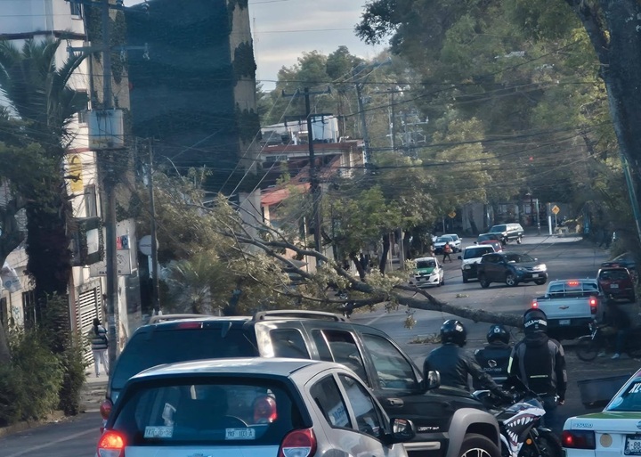Un carril de la avenida Adolfo Ruiz Cortines quedó interrumpido alrededor de las 17:00 horas del domingo por la caída de un árbol, cerca del Centro de Alta Especialidad (CAE) «Doctor Rafael Lucio».