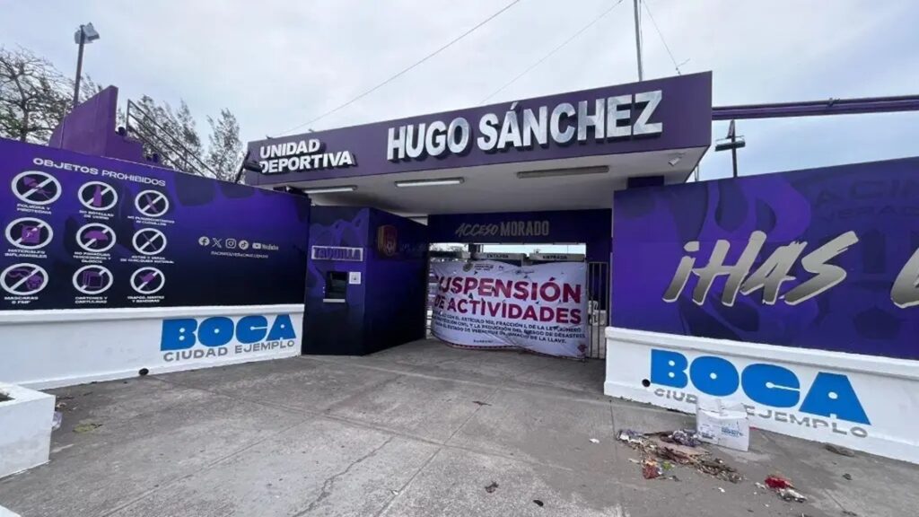 Al respecto, la gobernadora Rocío Nahle García anunció la suspensión temporal de obras y de cualquier actividad en la Unidad Deportiva Hugo Sánchez Márquez, ubicada en el municipio de Boca del Río.