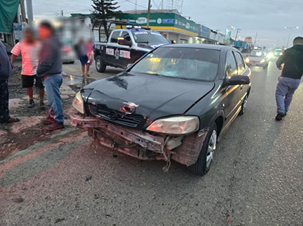 A las 06:36 horas, en el crucero qué componen la prolongación Miguel Hidalgo y la carretera federal libramiento, se registró un accidente, donde se ven involucrados un automóvil y una motocicleta.