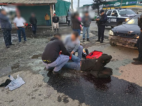 Al sitio acudieron paramédicos de protección civil y bomberos, quiénes le brindaron la atención prehospitalaria a la víctima, la cual resultó con fractura expuesta de la pierna derecha y fue necesario su traslado al hospital IMSS bienestar.