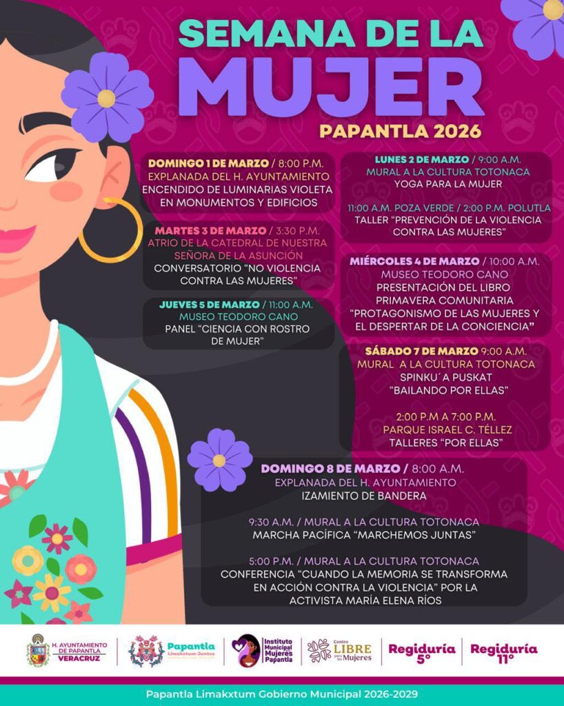 El gobierno municipal que encabeza el alcalde Mtro. Gonzalo Flores Casteallanos, a través de la secretaria de Desarrollo Social y el Instituto Municipal de las Mujeres y el Centro Libre para las Mujeres, organizan del 1 al 8 de marzo, la Semana de la Mujer 2026.