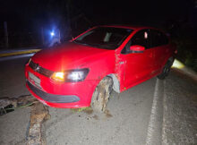 Tlapacoyan, Ver. Contra un poste de madera se estrelló un automóvil Volkswagen de la línea Vento, su conductor quedó detenido en la cárcel pública. El accidente se registró
