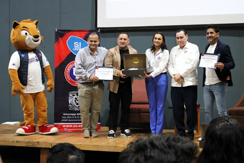 La Universidad de Sotavento A.C. conmemoró su 32 aniversario con la conferencia “Que nadie ponche tus sueños” impartida por los exintegrantes de la Selección Mexicana de Futbol, Germán Villa e Isaac Terrazas en el Centro de Convenciones Coatzacoalcos, donde se registró lleno total con la asistencia de estudiantes de nivel medio superior y superior.
