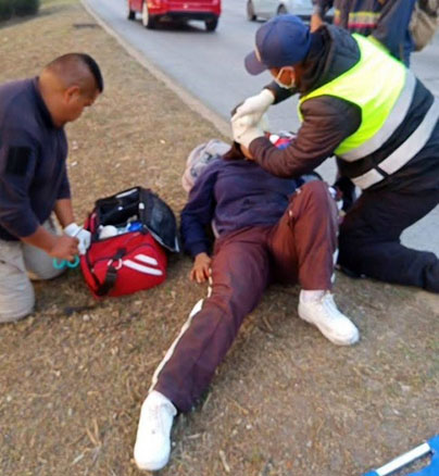 Paramédicos de la Comisión Nacional de Emergencias brindaron los primeros auxilios y trasladaron a ambos a un hospital para recibir atención médica especializada. Elementos de Tránsito del Estado realizaron las diligencias en el sitio y recabaron información para intentar identificar el automóvil involucrado, el cual hasta el momento no ha sido localizado. La circulación en la zona presentó afectaciones parciales durante las labores de rescate.