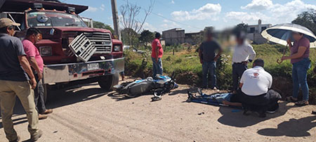 XALAPA, Ver. – Un matrimonio joven resultó lesionado tras colisionar su motocicleta contra un camión de volteo en la colonia Pintura, perteneciente a la localidad de El Castillo. El accidente ocurrió sobre el camino hacia Las Ánimas, en una zona de terracería caracterizada por el constante tránsito de vehículos de carga pesada.