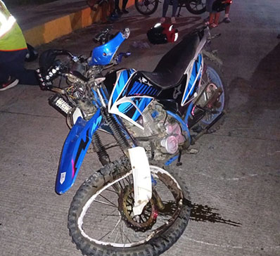 Al filo de las 23:20 horas, en el crucero de la carretera federal y entrada al Diamante, justo por la colonia Moctezuma, se impactaron dos motocicletas, una DM 250 de color azul conducida por Adolfo Santiago y la otra unidad una ND 250 de color negro presuntamente conducida por Martín de la cruz de 60 años y otra persona que viajaba como copiloto.