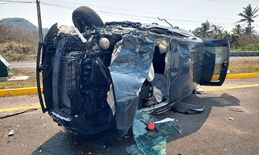 Marino choca contra autobús de turismo y vuelca sobre el bulevar en Antón Lizardo