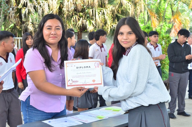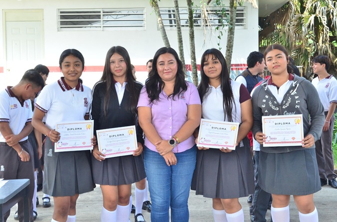 En un evento cívico, la Ing. Telma Contreras Hernández, directora del plantel COBAEV 28, hizo importante entrega de reconocimientos a cada uno de los estudiantes que participaron en cada disciplina y con ello se impulsa a quienes dan muestras de que cuando se quiere, se logran los resultados.