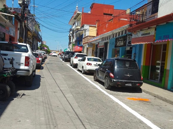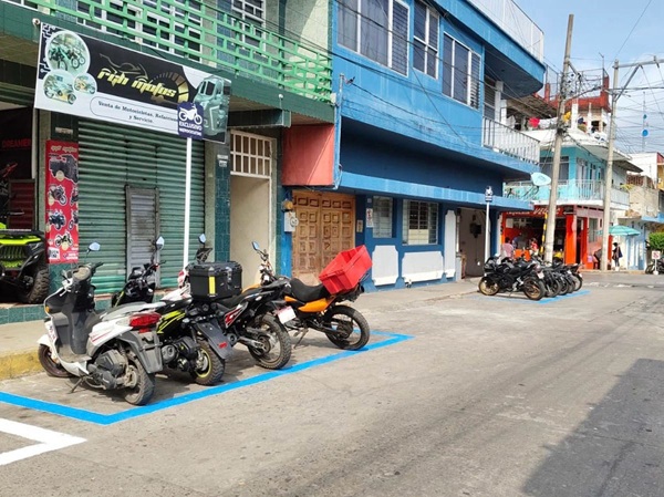 Como parte de estas actividades, se realizan trabajos de delimitación de cajones exclusivos para motocicletas y vehículos en la avenida 5 de Mayo, calle Ferrer y la avenida Juan de la Luz Enríquez.