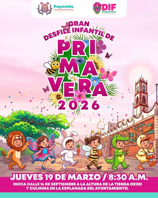 Con el objetivo de celebrar la llegada de la estación más colorida del año y fomentar la convivencia familiar, el Sistema DIF Papantla hace una cordial invitación a toda la ciudadanía a presenciar y llenar de aplausos el Gran Desfile Infantil de Primavera.