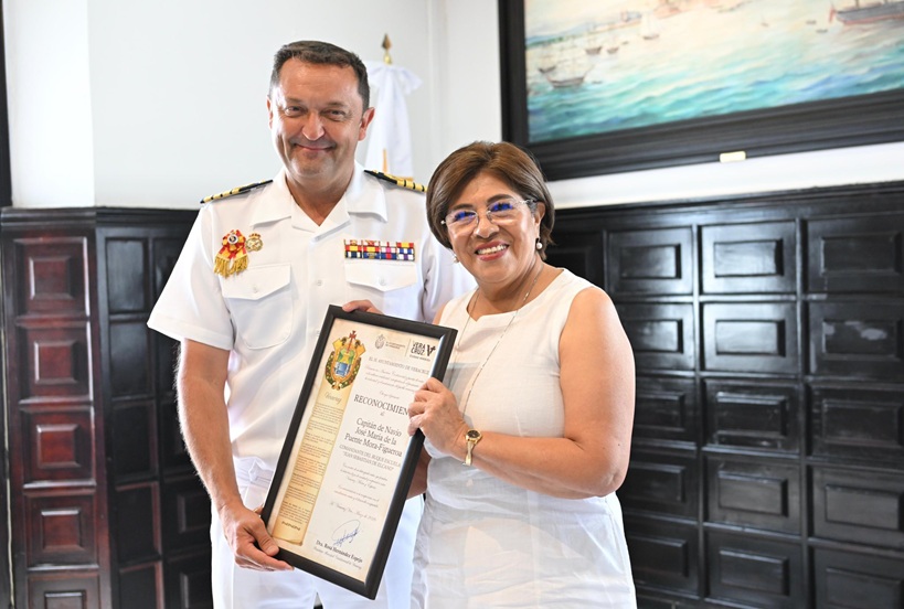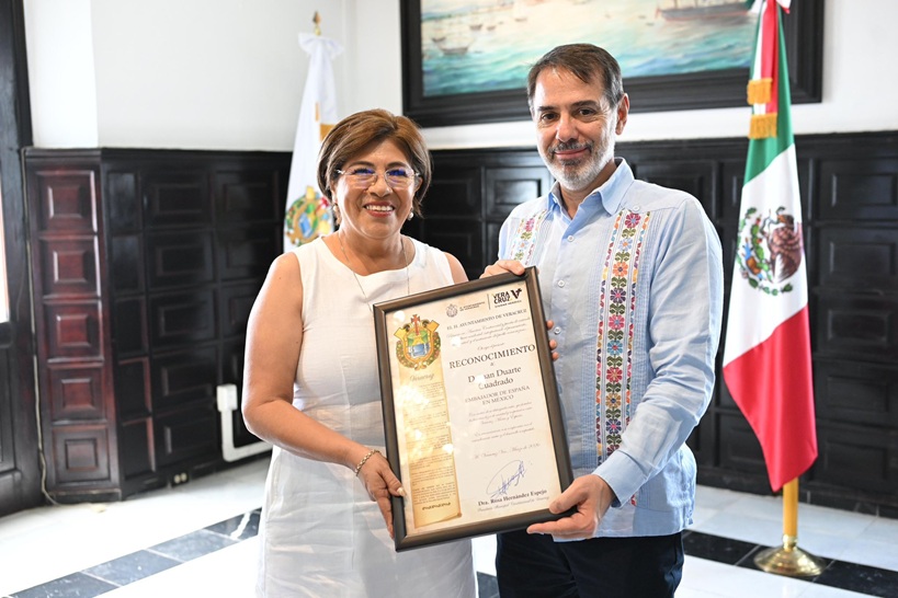 Como parte de los vínculos históricos de intercambio cultural, comercial y marítimo entre Veracruz y España, la presidenta municipal, Rosa María Hernández Espejo, encabezó en el Palacio Municipal la recepción oficial al Embajador de España en México, Juan Duarte Cuadrado, así como al comandante del Buque Escuela Juan Sebastián de Elcano, José María de la Puente Mora-Figueroa, con motivo de la visita de esta embarcación a la ciudad.