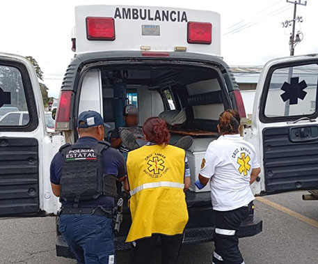 Minutos después arribaron paramédicos de Cruz Ámbar, quiénes hicieron cargo de brindarle la atención prehospitalaria a la víctima y luego trasladarlo a la clínica 28 del seguro social.