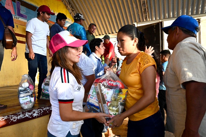 • En representación de la gobernadora Rocío Nahle García, la diputada Naomi Edith Gómez y el diputado Esteban Bautista encabezan la distribución de dos mil despensas.