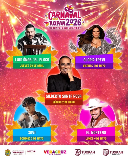 Carnaval Tuxpan 2026, contara con cinco conciertos masivos de talla internacional pero además es para todos los gustos musicales lo que traerá visitantes de diversas regiones del país.