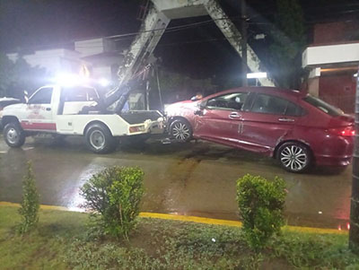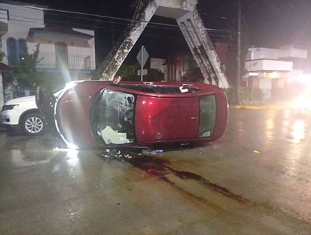 El accidente ocurrió el pasado lunes, a las 04:00 horas, en el boulevard Luis Donaldo Colosio, frente al fraccionamiento Las Margaritas, por dónde el automóvil Honda Civic, con placas de circulación TSV-351-B del estado de Puebla y conocido por una mujer, al impactarse en dos vehículos, perdió el control y termina volcada la unidad sobre el pavimento.