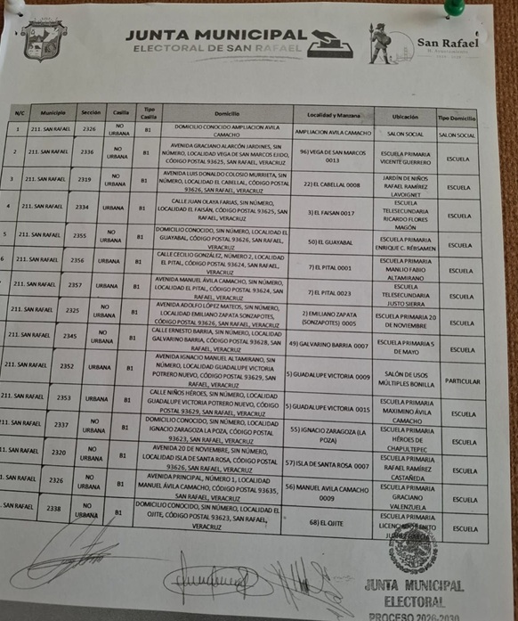 Se instalarán 31 casillas, la comunidad de Puntilla Aldama y Potrero Nuevo que contarán con más de una casilla para esta jornada. Sobre la ubicación de las urnas, explicó que la ciudadanía puede consultarla en los estrados del ayuntamiento.