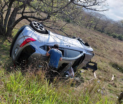Volcadura de automóvil, a la altura dé «Mar Azul»