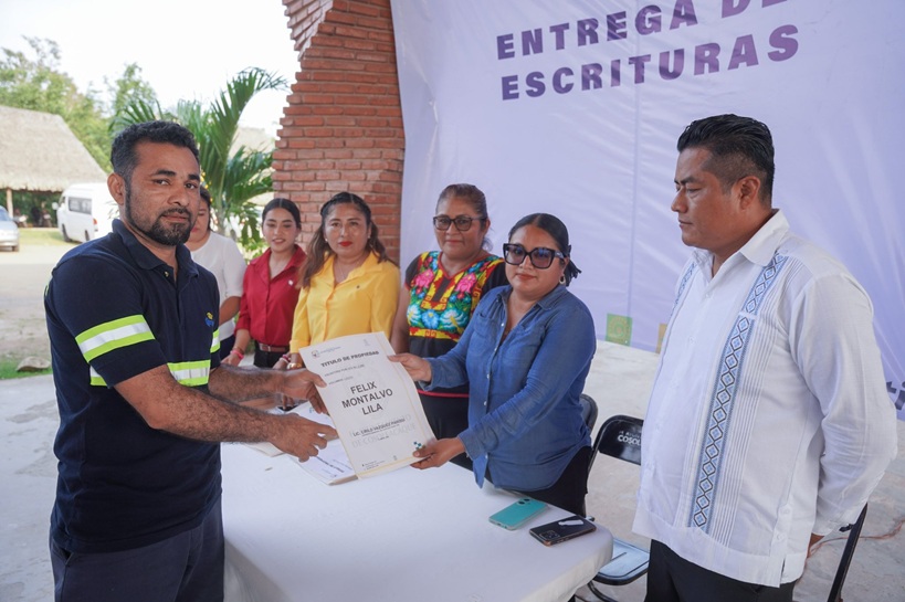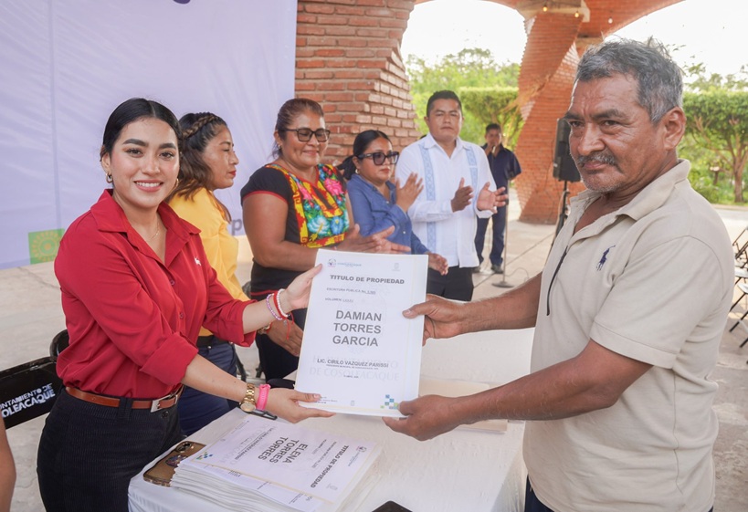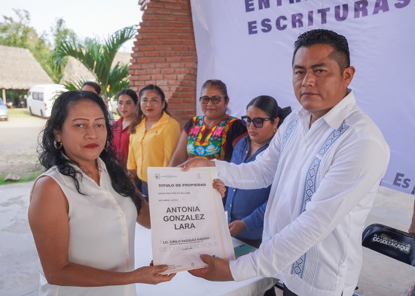 El H. Ayuntamiento de Cosoleacaque, encabezado por el alcalde Cirilo Vázquez Parissi, entregó escrituras gratuitas de fundo legal a 65 familias beneficiadas.