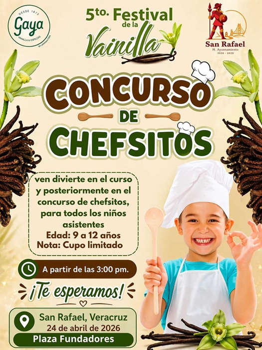 Invitan a Concurso de “Chefsitos” durante el Festival de la Vainilla en San Rafael