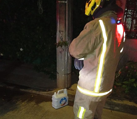 Aseguran vecinos de la calle Margaritas, quedó sujetos a bordo de una motocicleta pasaron y uno de ellos con una piedra rompió el medallón y otro con una garrafa le roció gasolina y con un cerillo la prendió.