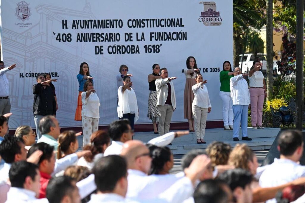 Con la participación de la Escuela de Bachilleres Artes y Oficios, autoridades municipales y público en general, este lunes en acto cívico se conmemoró el 408 Aniversario de la Fundación de Córdoba de 1618, evento celebrado en la Explanada del parque 21 de Mayo.