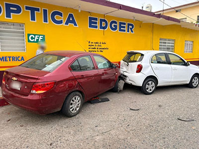 Se trata de un automóvil Chevrolet de la línea Aveo, con placas de circulación YEN-673-C del estado, al fuerte impacto salió proyectado y se estrella contra otro vehículo estacionado.