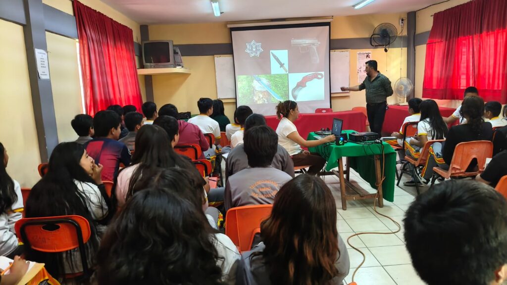 La ponencia estuvo a cargo del licenciado Miguel Ángel Damián Sandoval, director de Seguridad Pública Municipal, quien abordó temas relevantes como el uso de armas de fuego, objetos punzocortantes y las consecuencias legales y sociales de introducir este tipo de artefactos en el entorno escolar.