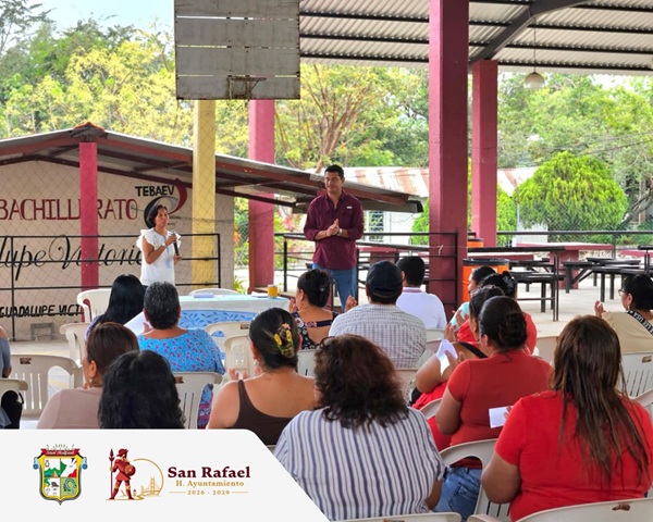 El Ayuntamiento de San Rafael informó sobre la visita del presidente municipal al TEBAEV de la localidad de Guadalupe Victoria (Potrero Nuevo), como parte de las acciones orientadas a fortalecer el vínculo con las instituciones educativas. Durante el recorrido, se sostuvo un diálogo con docentes y padres de familia para conocer de primera mano las necesidades del plantel.
