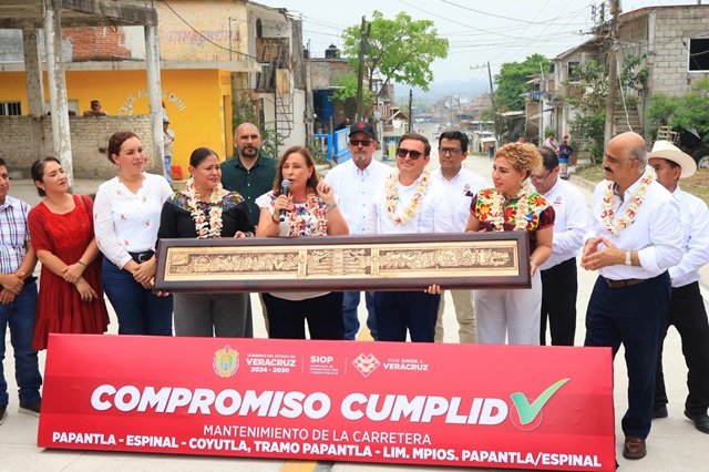 Acompañada por el secretario de Infraestructura y Obras Públicas (SIOP), Leonardo Cornejo Serrano, y autoridades municipales, destacó que esta vía forma parte del circuito Papantla–Espinal–Coxquihui, con ramal a Coyutla, y que también beneficia a los municipios de Filomeno Mata, Zozocolco, Chumatlán y Coahuitlán.