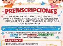 Comunicación Social Tlapacoyan, Ver. El Sistema DIF Municipal de Tlapacoyan, invita a madres y padres de familia a realizar la preinscripción de niñas y niños en edad preescolar