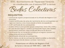 Comunicación Social Tlapacoyan, Ver. El H. Ayuntamiento de Tlapacoyan, en coordinación con el Sistema DIF Municipal, invita a las parejas interesadas a participar en el programa de Bodas