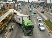 #Xalapa Un tráiler cargado con Leche quedó atorado bajo un puente peatonal sobre la Avenida Lázaro Cárdenas, a la altura del cruce con la calle Veracruz frente al
